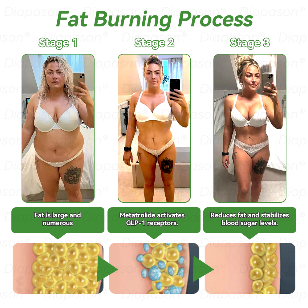 The product reduces calorie accumulation by curbing appetite and blocking fat/sugar absorption, while promoting rapid gastrointestinal metabolism for weight loss. Thereโs no medication tolerance or need for prolonged cycles. After achieving your ideal shape, maintain a normal dietโno long-term use required. No rebound or adverse effects will occur.