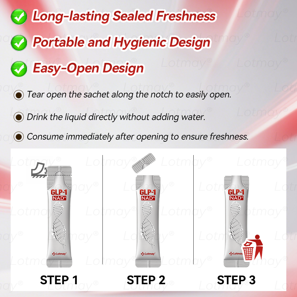 NMN rapidly converts to NADโบ in the body, replenishing cellular energy and promoting collagen synthesis to restore skin firmness and elasticity. GLP-1 regulates metabolism, accelerates fat breakdown, and aids in shaping and firming. Glucosamine supports joint and connective tissue health, further enhancing skin resilience. Multiple ingredients work synergisticallyโfrom cellular energy and metabolic regulation to antioxidant protectionโto comprehensively improve sagging, wrinkles, and dullness, restoring a firm, youthful, and healthy complexion.